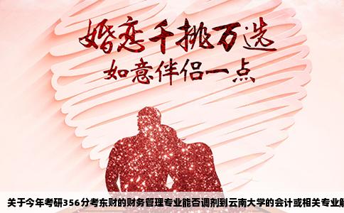 • 關(guān)于今年考研356分考東財(cái)?shù)呢?cái)務(wù)管理專業(yè)能否調(diào)劑到云南大學(xué)的會(huì)計(jì)或相關(guān)專業(yè)解析